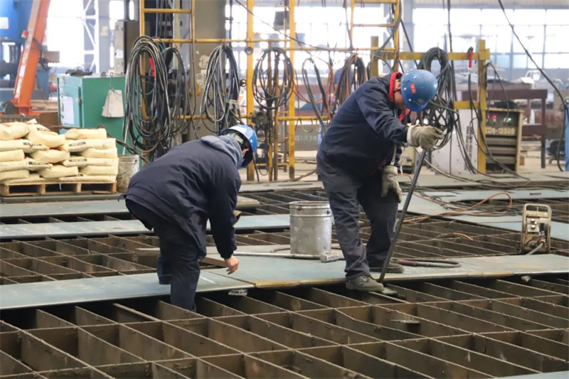 金龍送福至生產(chǎn)現(xiàn)場(chǎng),一片繁忙景象,據(jù)統(tǒng)計(jì),今日員工返崗率超91%。先行車間緊張忙碌著切割、焊接、打磨,機(jī)械轟鳴,總裝車間則快速進(jìn)行合攏、調(diào)試,焊花四起、門吊飛舞,全員正以開工即“滿弓”的姿態(tài)奮斗;保障部門員工則盡快落實(shí)報(bào)驗(yàn)、轉(zhuǎn)運(yùn)、檢修、保障工作,為快捷生產(chǎn)鼓足了勁,向著新年任務(wù)發(fā)起沖鋒挑戰(zhàn)。