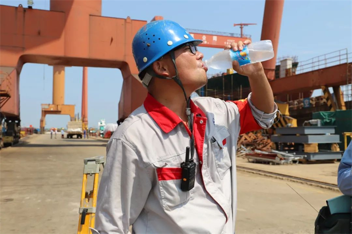 立秋不落雨,二十四只秋老虎。立秋第二天,蕪湖市氣象臺發(fā)布高溫紅色預警信號,秋老虎威力不減,40度高溫灼烤船廠大地,室外船體表面溫度高達60多度。蕪船人在烈日中踐行責任,在拼搏中展現(xiàn)擔當,面對酷暑高溫他們堅定必勝的信念、干勁十足,向著目標任務發(fā)起沖刺。